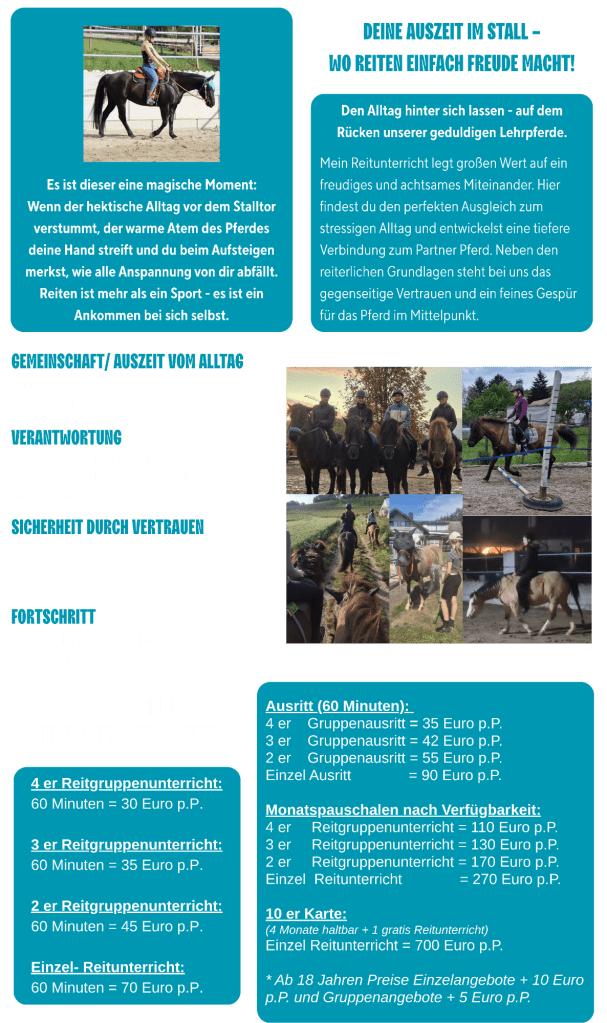 Reit-/, Bodenarbeits-/, Freiarbeitsunterricht mit Platznutzung